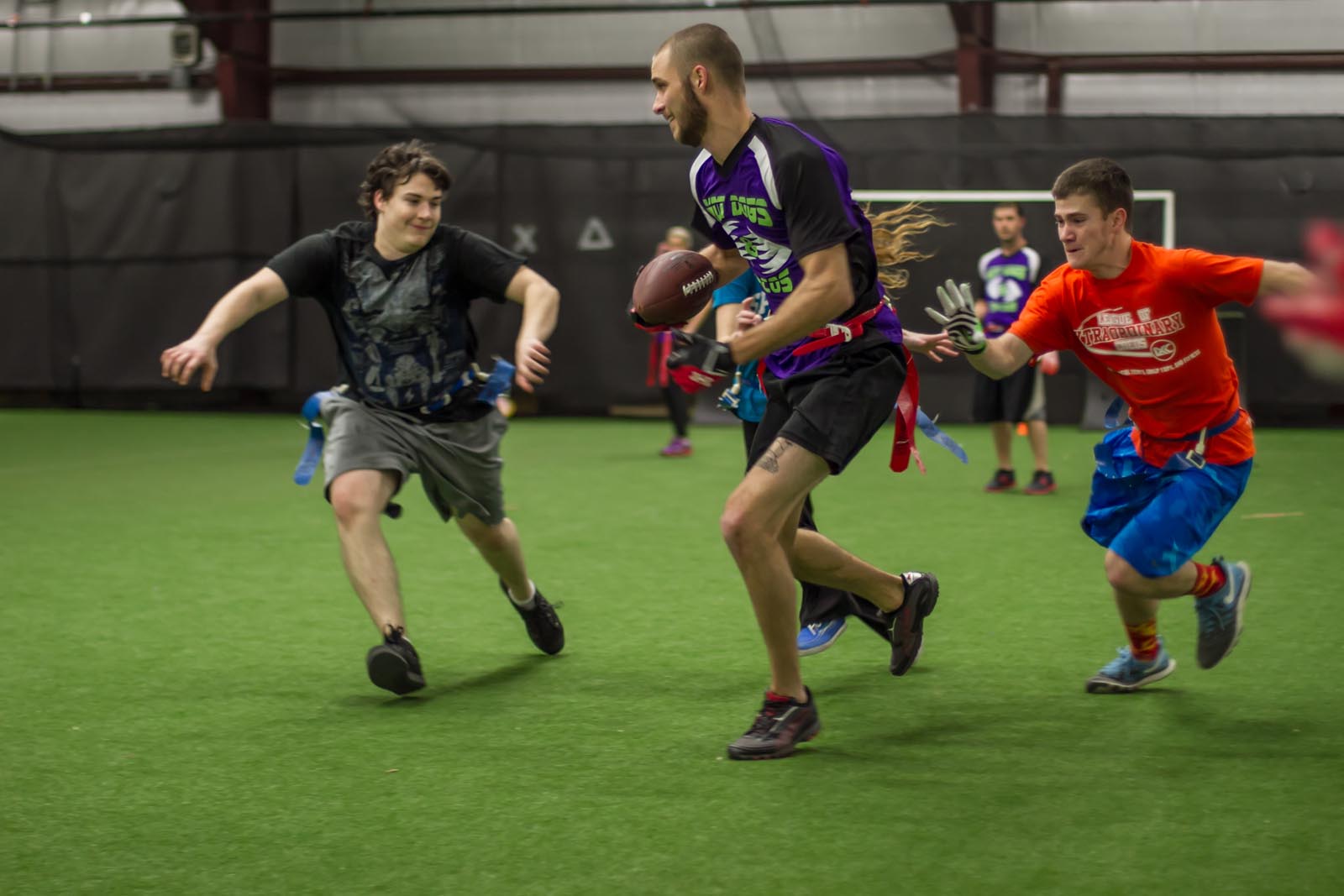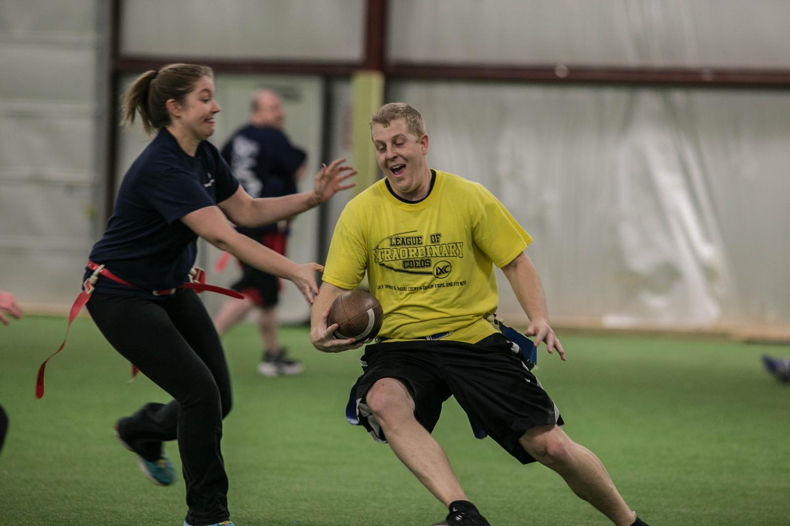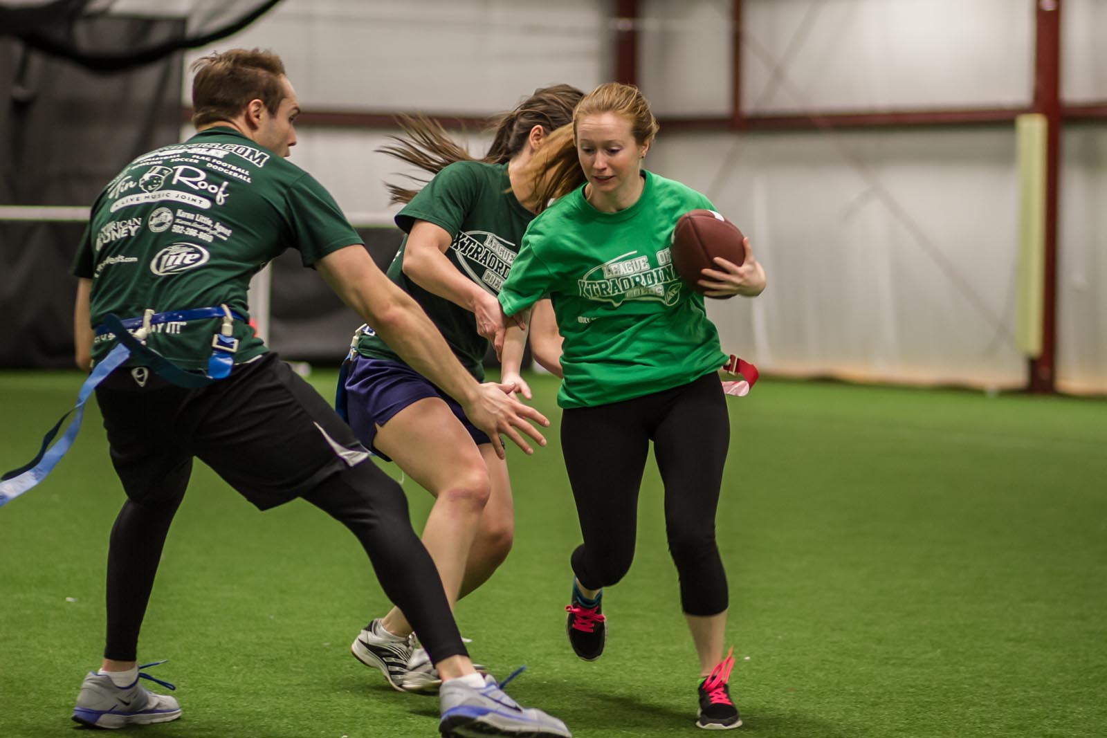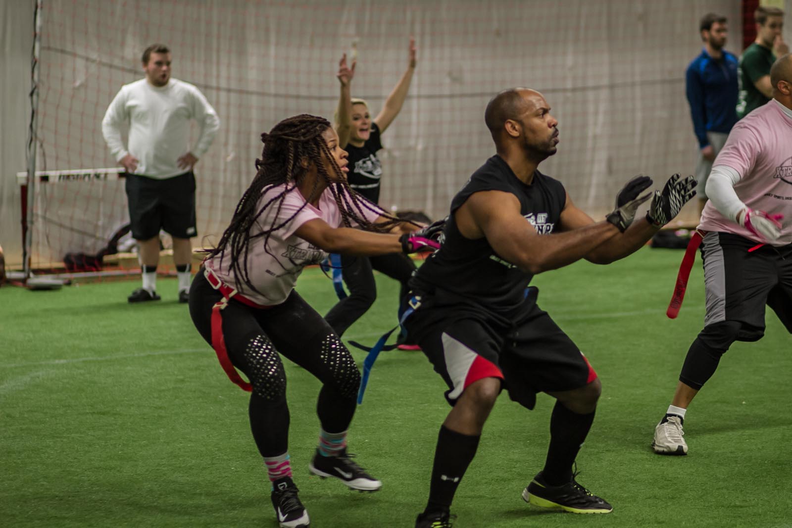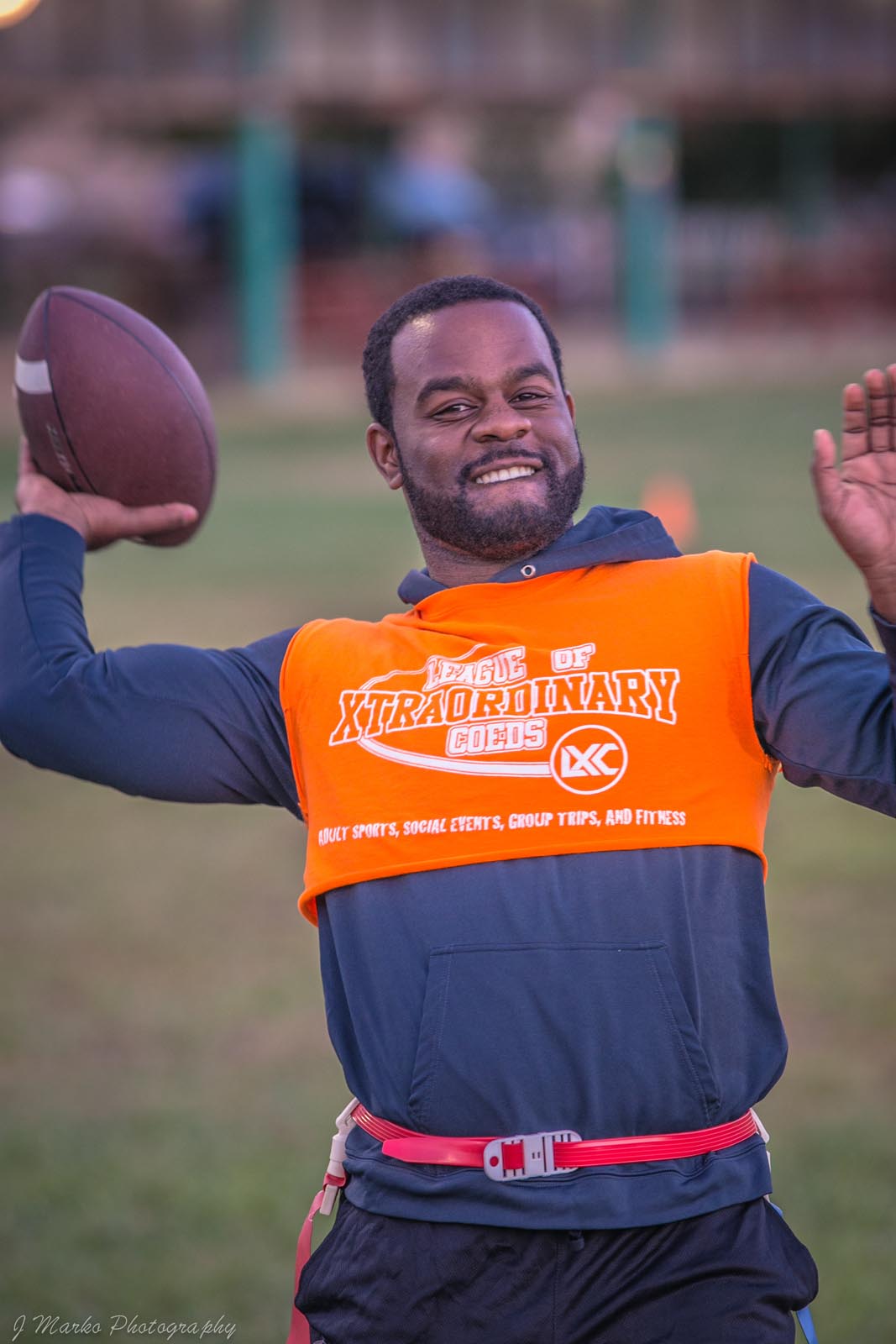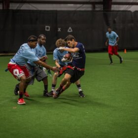 LXC’s flag football leagues bring together adults of all skill levels for an exciting and fast-paced game. Whether you’re looking for a laid-back experience or a more competitive challenge, we have the perfect league for you. Our goal is to create a fun and energetic environment where players can enjoy the thrill of the game, connect with teammates, and improve their skills. Expect action-packed games, supportive referees, and a strong sense of community both on the field and in the post-game socials. Join our flag football leagues today and elevate your game with LXC!