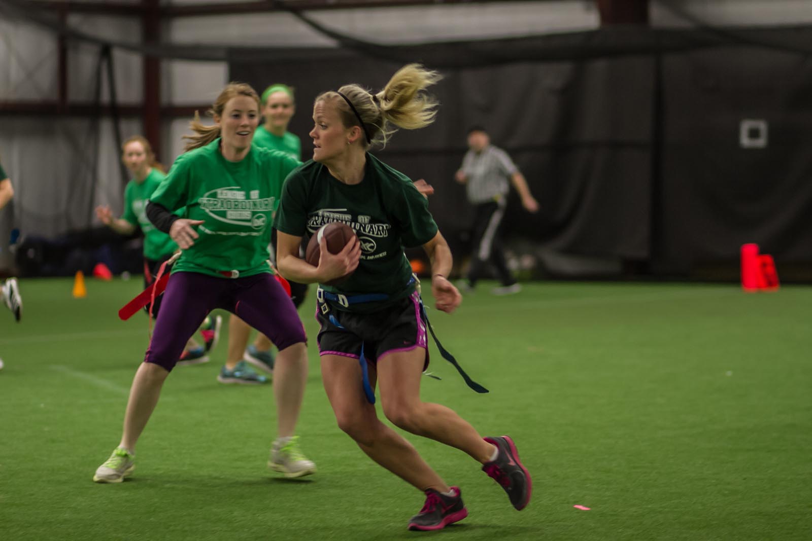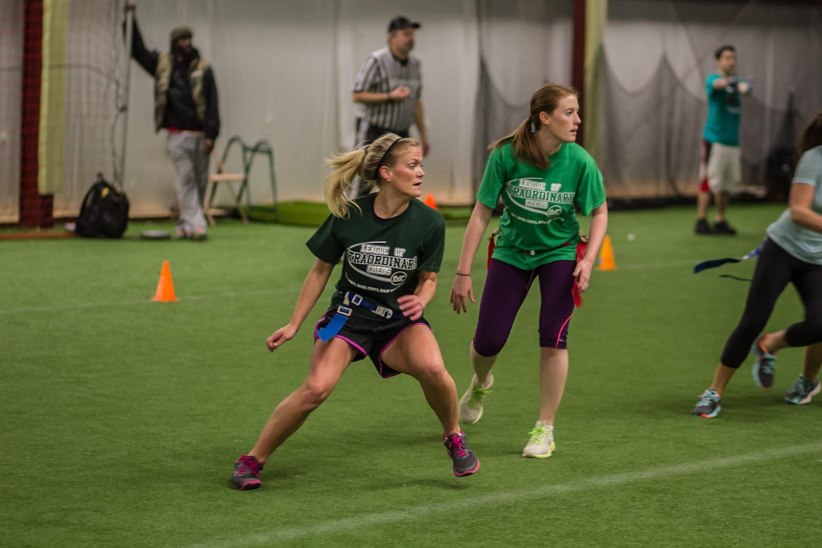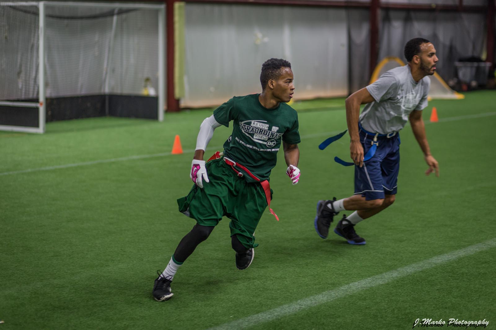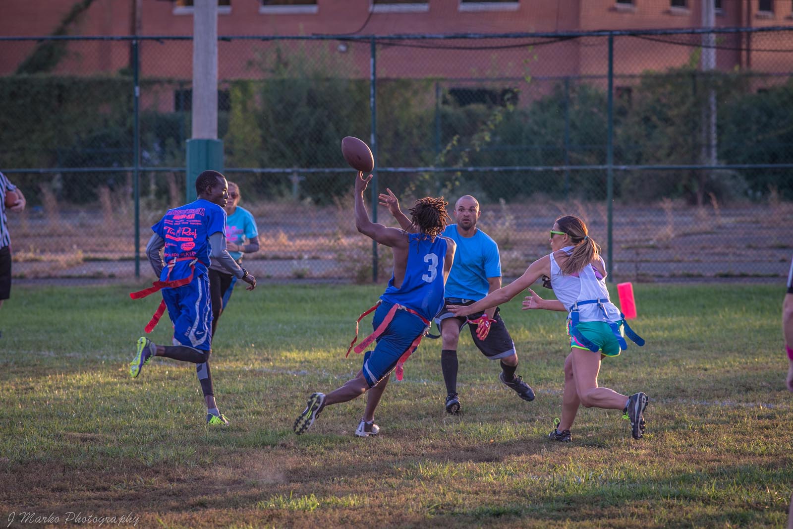 LXC’s flag football leagues bring together adults of all skill levels for an exciting and fast-paced game. Whether you’re looking for a laid-back experience or a more competitive challenge, we have the perfect league for you. Our goal is to create a fun and energetic environment where players can enjoy the thrill of the game, connect with teammates, and improve their skills. Expect action-packed games, supportive referees, and a strong sense of community both on the field and in the post-game socials. Join our flag football leagues today and elevate your game with LXC!
