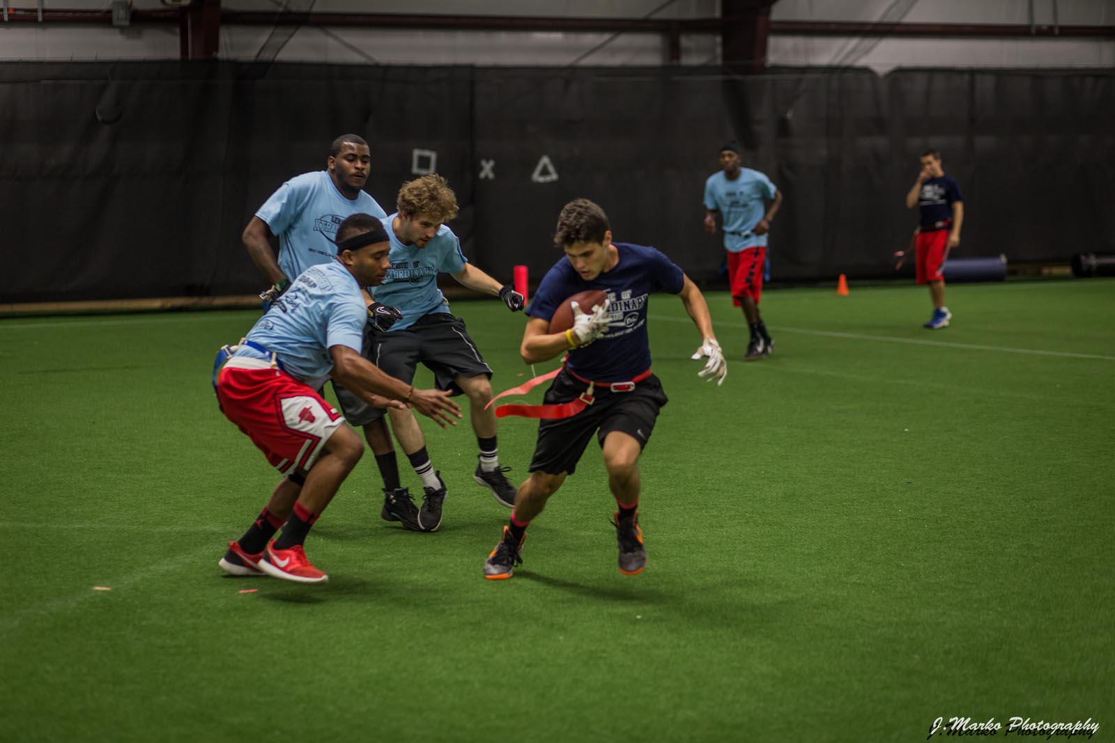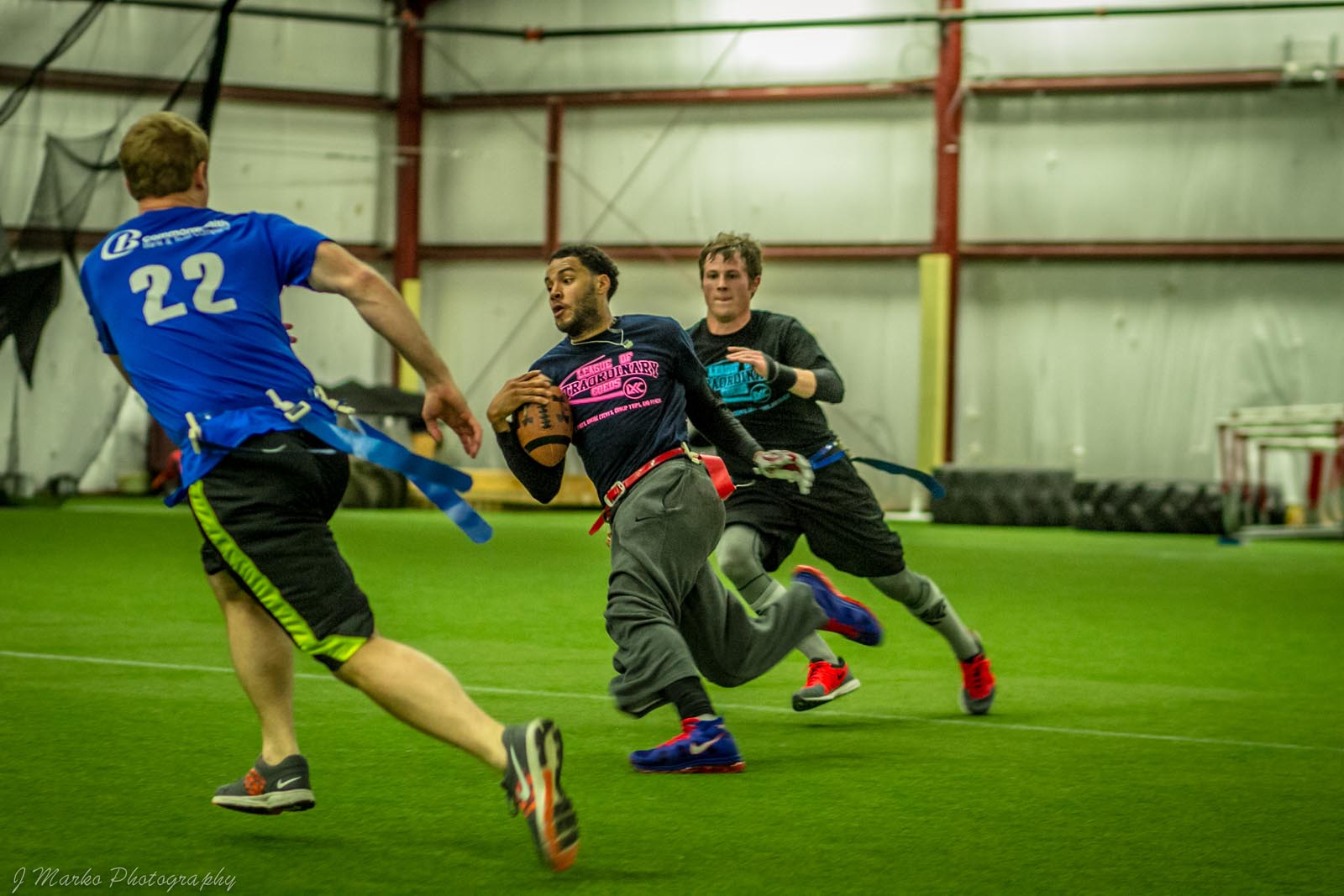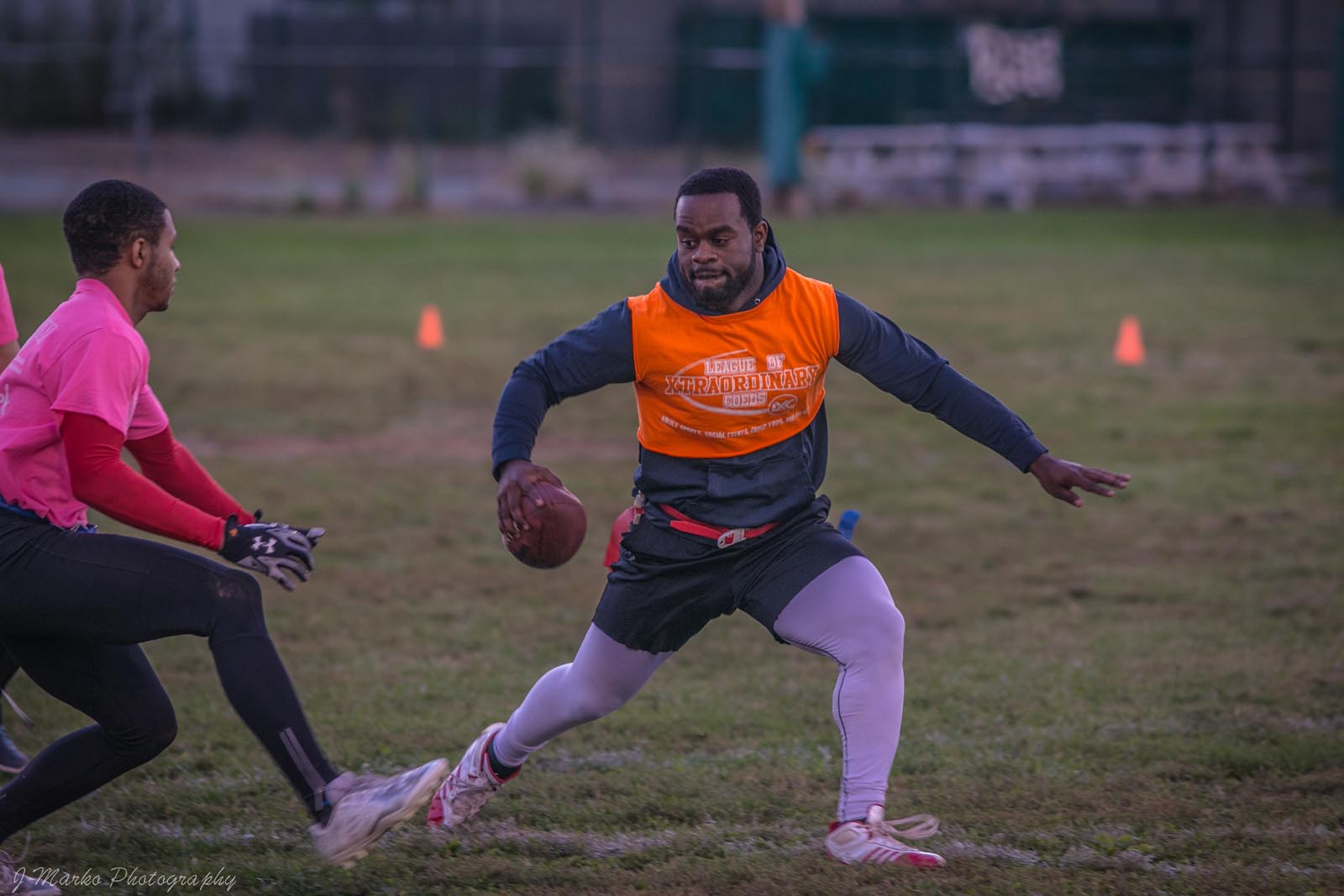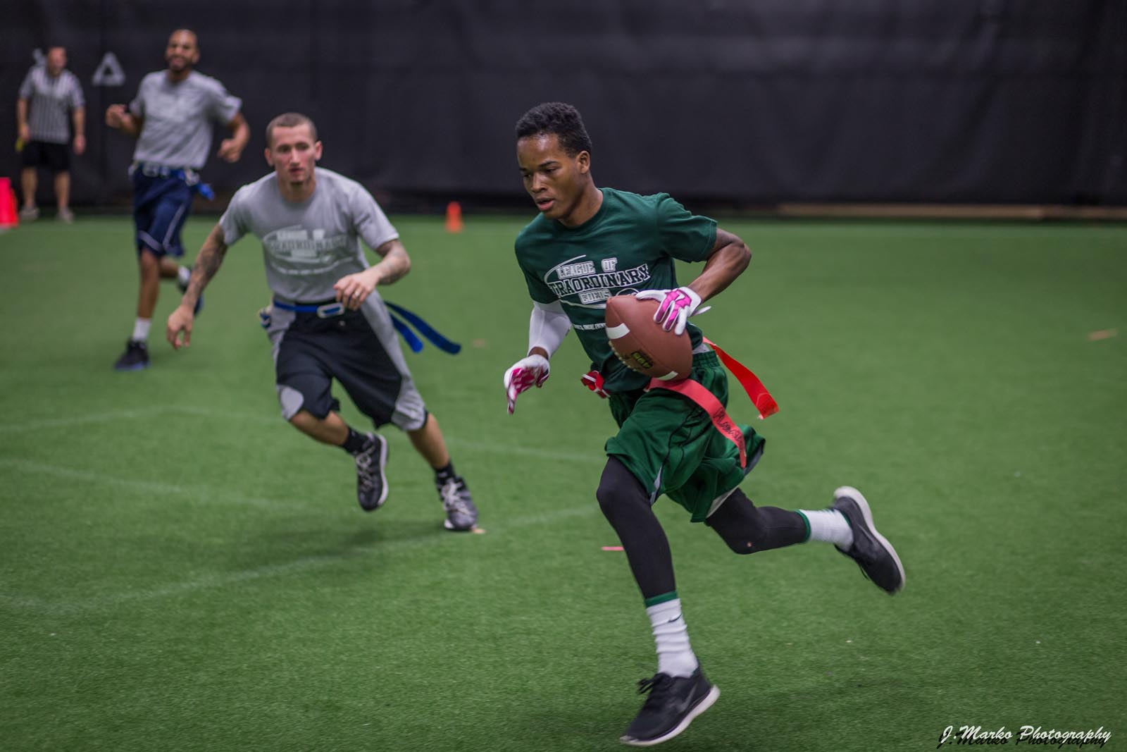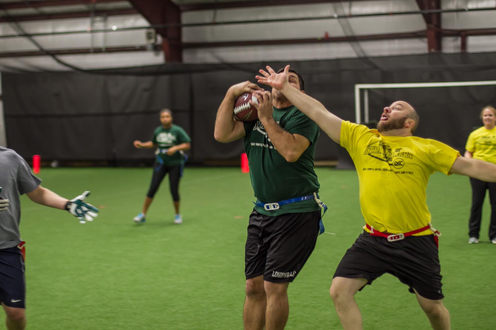 LXC’s flag football leagues bring together adults of all skill levels for an exciting and fast-paced game. Whether you’re looking for a laid-back experience or a more competitive challenge, we have the perfect league for you. Our goal is to create a fun and energetic environment where players can enjoy the thrill of the game, connect with teammates, and improve their skills. Expect action-packed games, supportive referees, and a strong sense of community both on the field and in the post-game socials. Join our flag football leagues today and elevate your game with LXC!