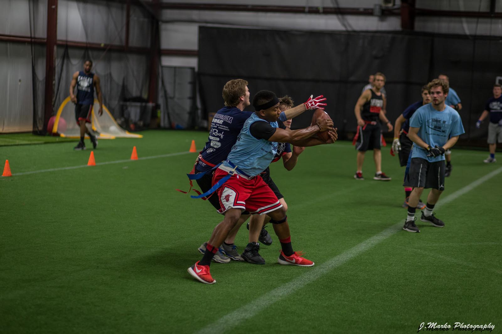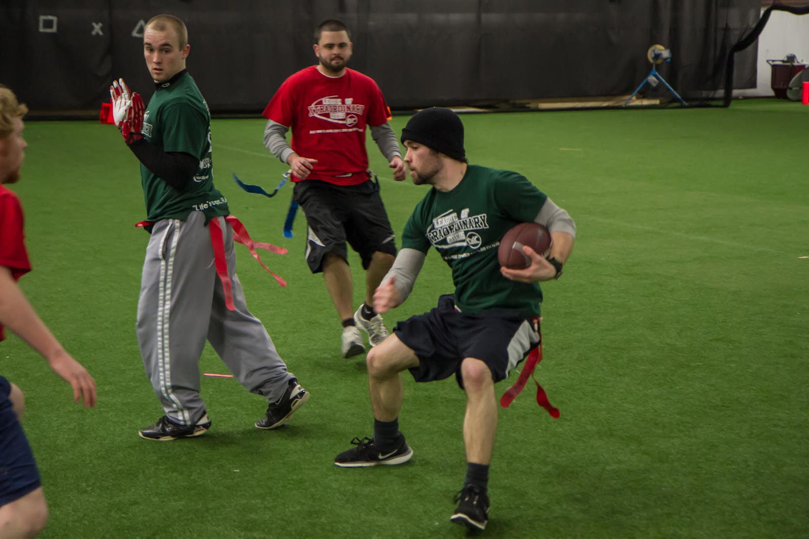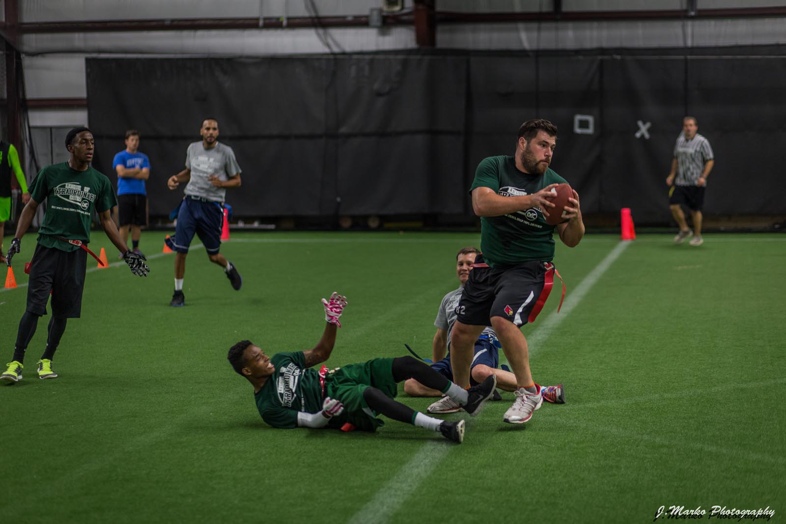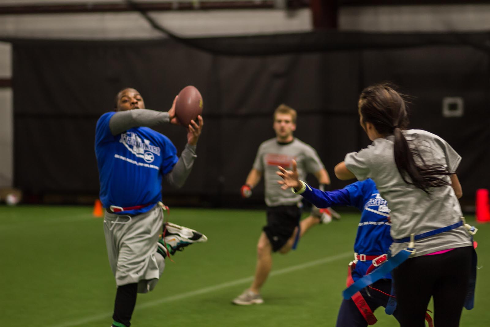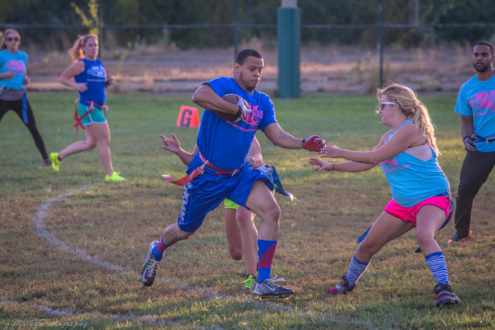 LXC’s flag football leagues bring together adults of all skill levels for an exciting and fast-paced game. Whether you’re looking for a laid-back experience or a more competitive challenge, we have the perfect league for you. Our goal is to create a fun and energetic environment where players can enjoy the thrill of the game, connect with teammates, and improve their skills. Expect action-packed games, supportive referees, and a strong sense of community both on the field and in the post-game socials. Join our flag football leagues today and elevate your game with LXC!